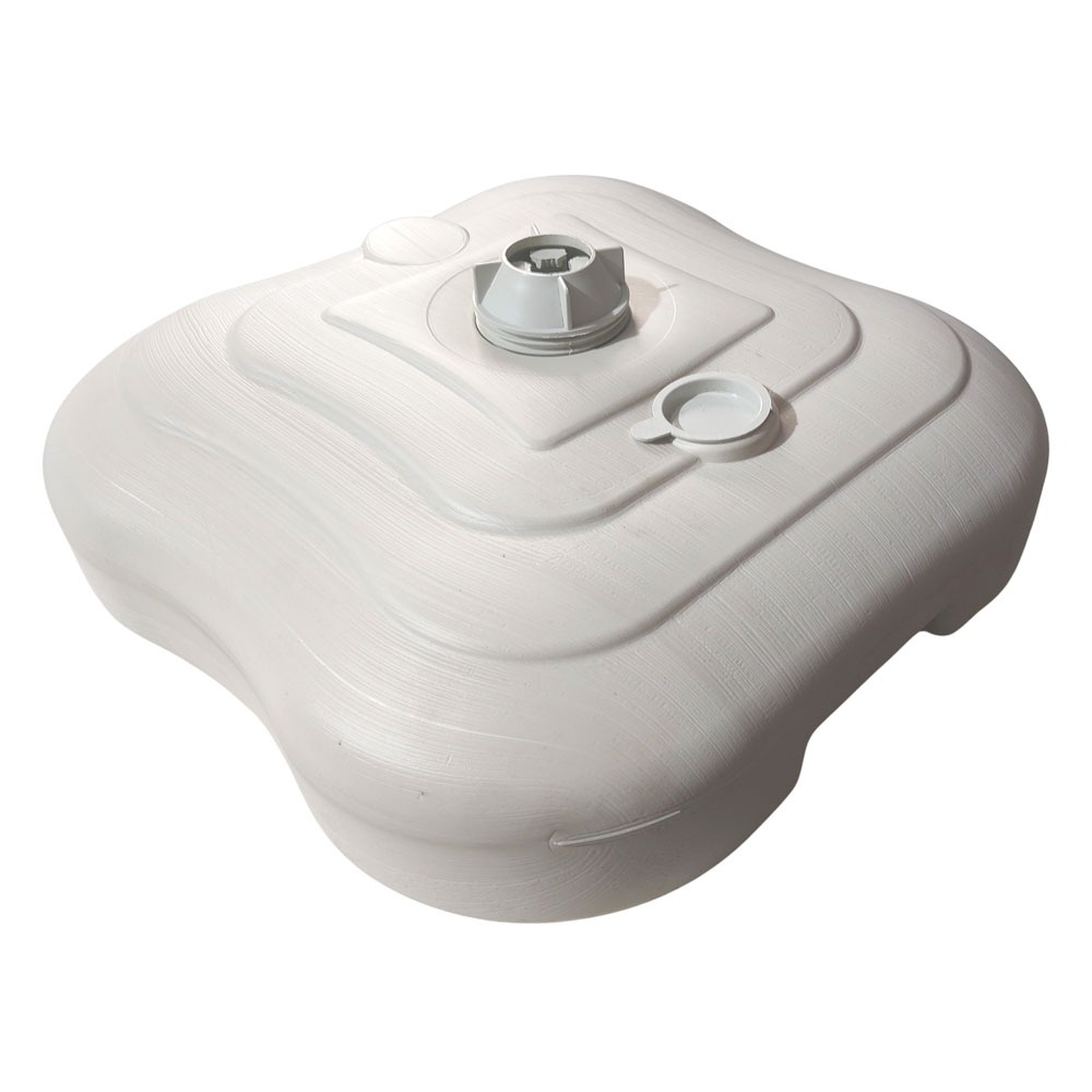 Base quadrada branca para wind banner que também pode ser utilizada como base para bandeira e guarda sol de praia desenvolvida para conferir resistência e praticidade, mantendo seu wind banner estável no solo, em pé e bem firme divulgando com eficiência sua marca, produto ou serviço.