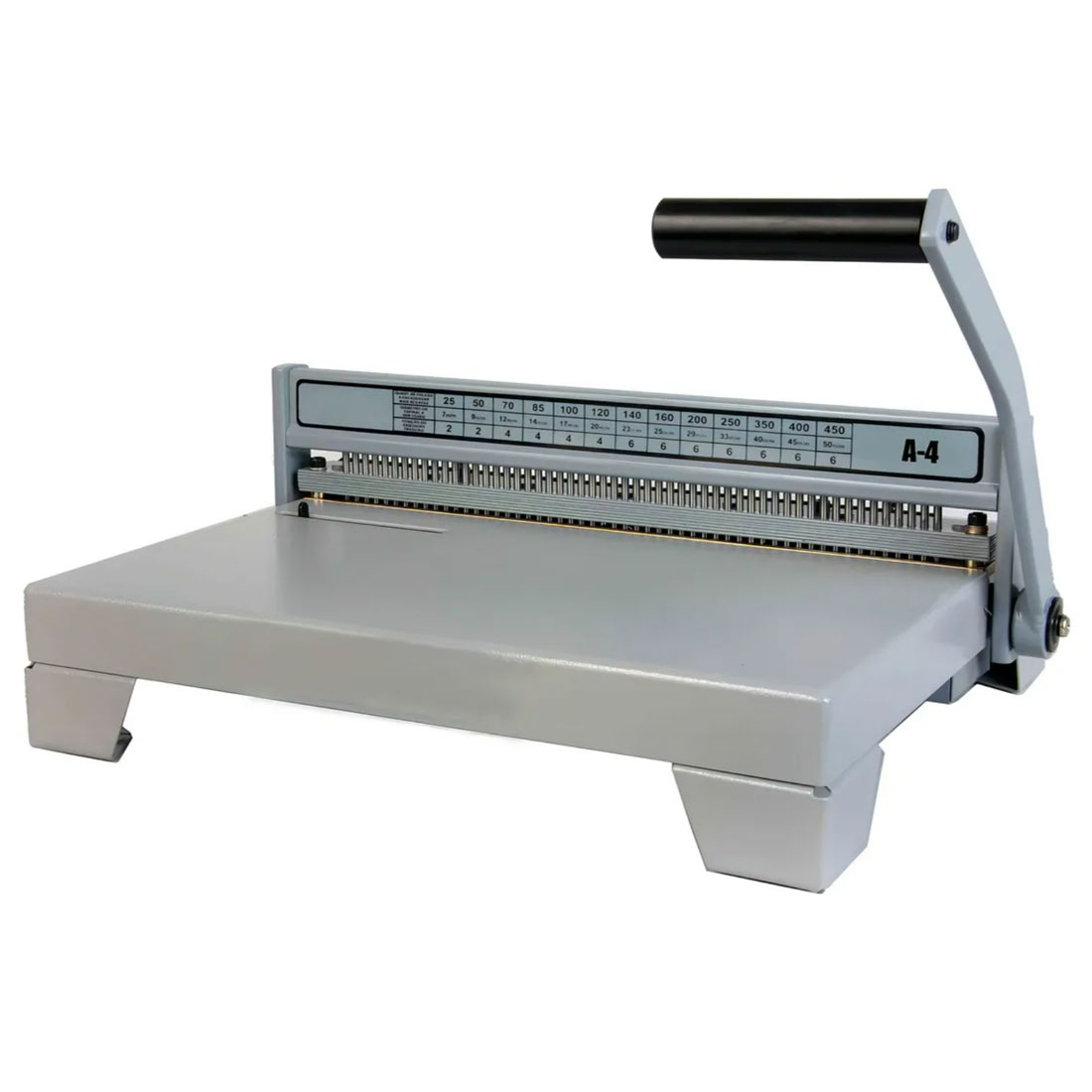 Perfuradora em aço tratado que garante longa vida ao equipamento e reduz a possibilidade de ferrugens, com pintura epóxi eletrostática. Equipamento robusto, de alta qualidade para você começar com pé direito no mercado de encadernação!