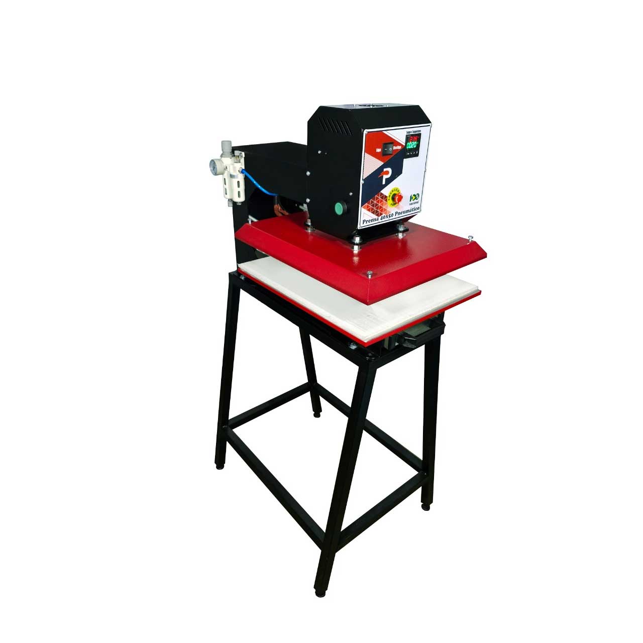 O maior diferencial da prensa térmica pneumática é seu acionamento por pistão através de botões, que evita possíveis acidentes.